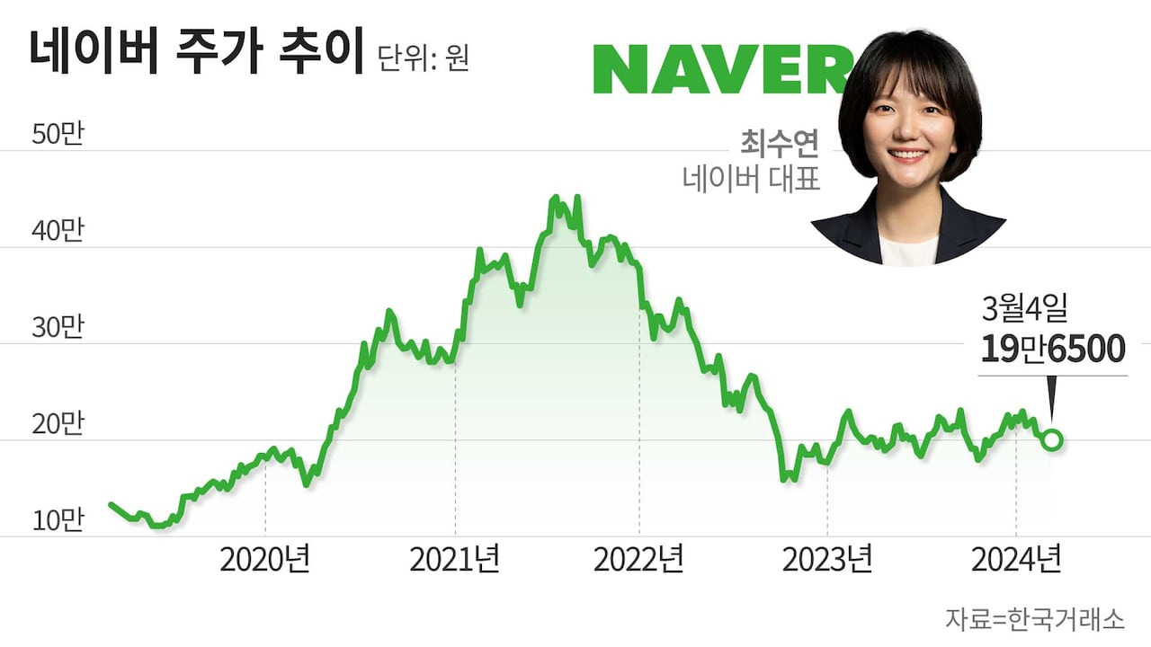 [3] 머니S - 회복은 언제... 네이버 주가는 바닥에서 지하로 (https://www.moneys.co.kr/article/2024091014301373389)