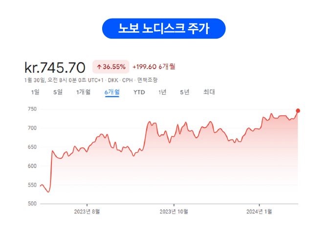 노보노디스크 주식은 비만 치료제 시장의 성장성과 맞물려 더욱 주목받고 있으며, 위고비의 시장에서의 성과는 향후 주가에 긍정적인 영향을 미칠 것으로 예상됩니다.