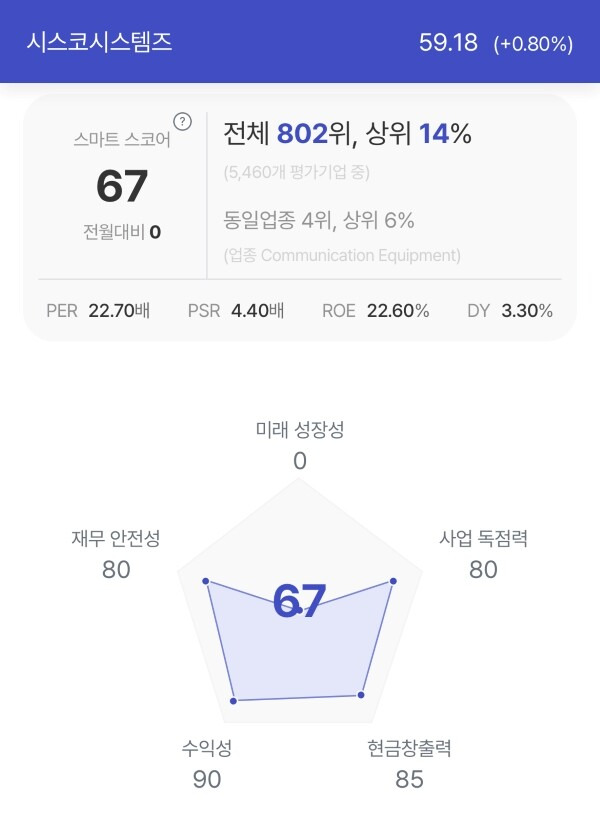 주요 재무 지표를 살펴보면, PER이 22.70, PSR이 4.40으로 나타나고 있어요. ROE는 22.60%로 안정적인 수익성을 보여주고 있고, 배당 수익률도 3.30%에 달해요.