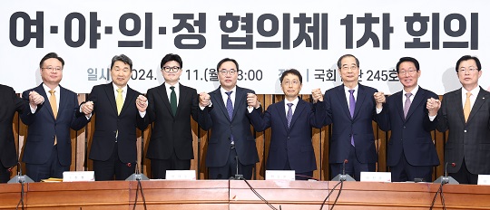 [4] 머니투데이 - 야당 빠진 여·야·의·정 협의체 첫 회의…한동훈 "이제 정말 ... (https://news.mt.co.kr/mtview.php?no=2024111108383285319)