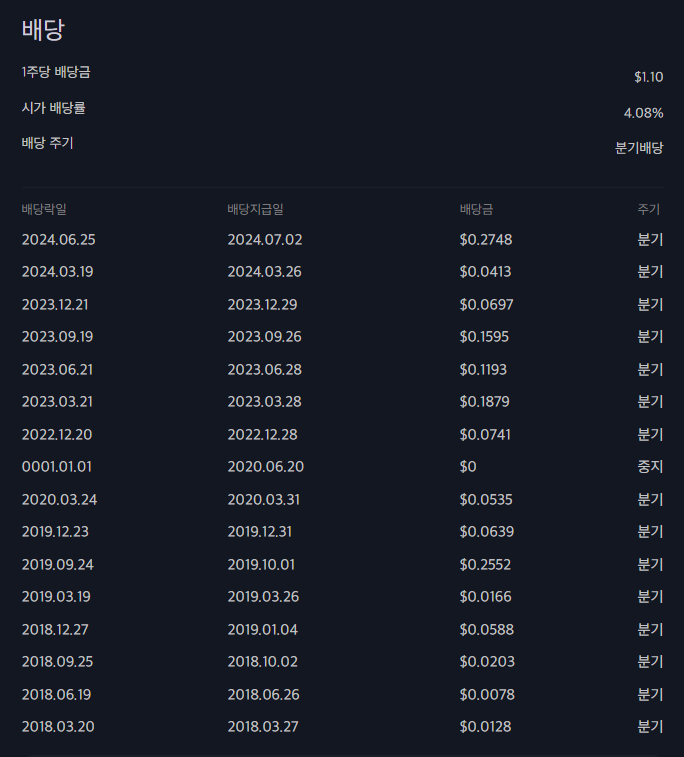 SOXS ETF는 배당금도 지급하는데요, 최근 배당금은 약 1.1달러 수준으로, 연배당률은 약 4.08%에 달합니다.