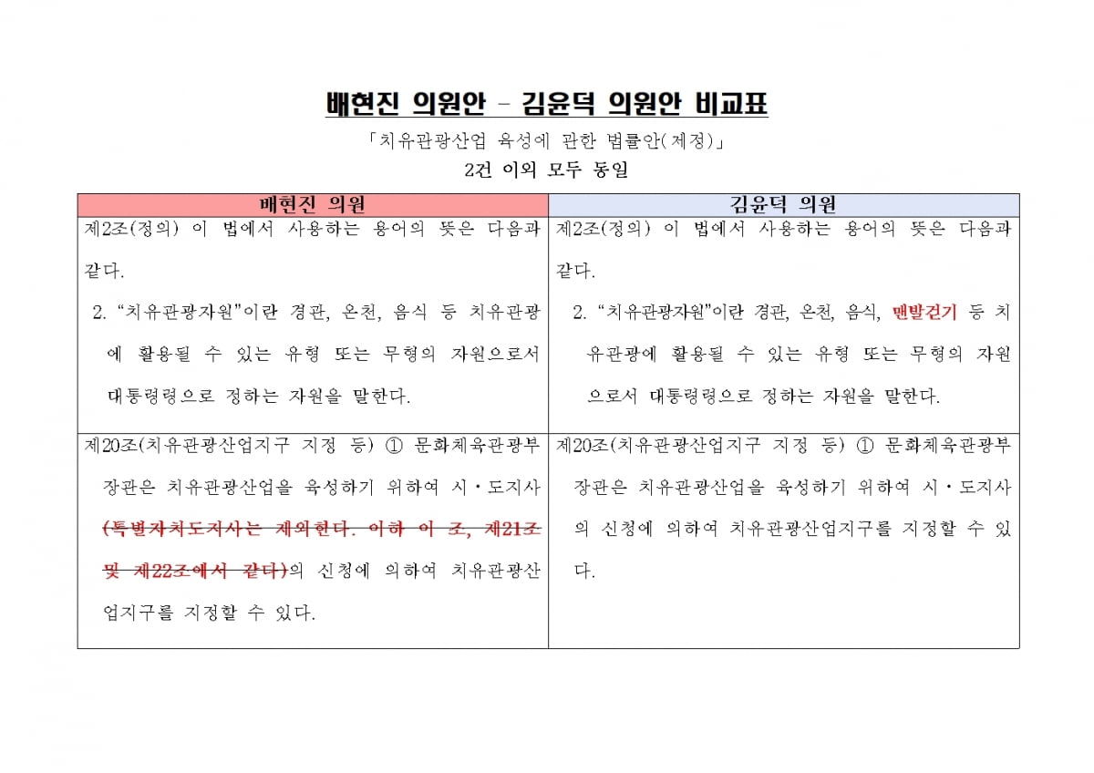 법안에 대한 비교는 필수적입니다. 배현진 의원과 김윤덕 의원이 각각 발의한 법안의 주요 내용을 비교하는 표가 필요해요. 법안의 조항, 해석, 그리고 적용 방안 등을 정리하면 좋겠죠.