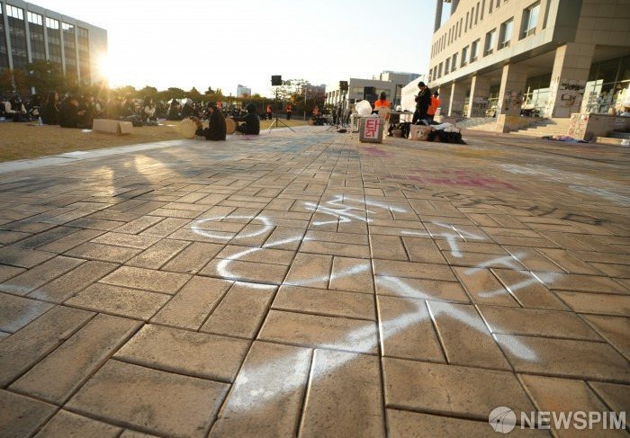 집회가 진행되는 동안, 학생들은 검은 옷을 입고, 마스크를 착용한 채로 의자에 앉거나 서서 집회의 흐름을 지켜보았어요. 주변은 긴장감이 감도는 분위기였지만, 학생들 사이에서는 연대감이 느껴졌답니다.