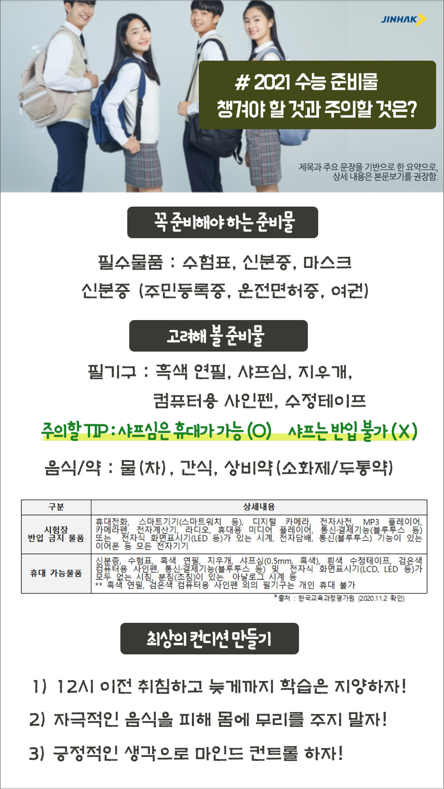 수능 준비물 체크리스트