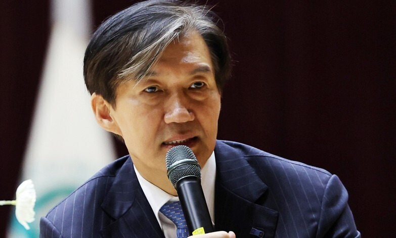조국 전 장관의 대법원 판결 관련 연설 모습입니다.