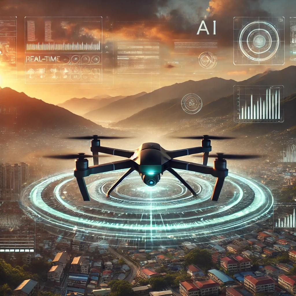 이 이미지는 팰러다인 AI의 드론이 도시 위를 비행하는 모습으로, 이 회사의 기술력을 잘 보여주고 있어요.
