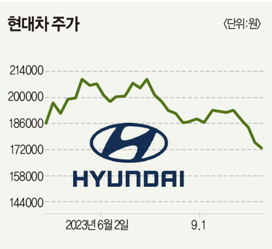 현대차의 주가는 최근 몇 달간 변동성이 있었어요. 2023년 6월부터 9월까지 주가는 140,000원에서 210,000원 사이에서 오르내렸죠.