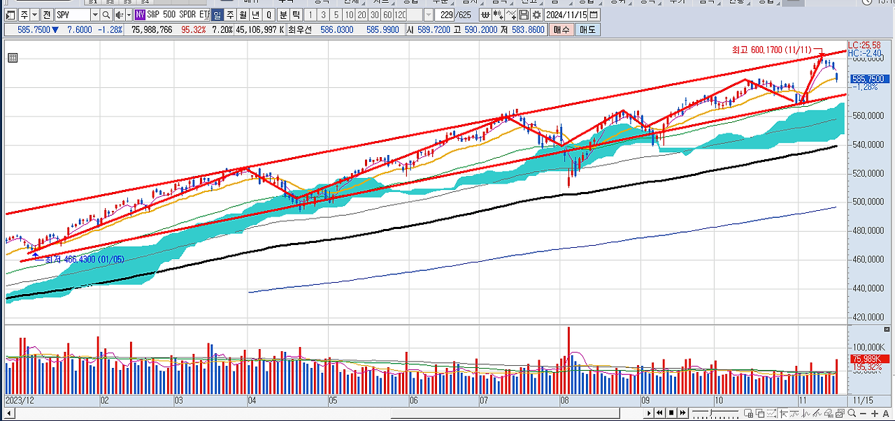 에서 현재 가격은 585.75 USD로 기록되고 있으며, 이 가격이 저항선을 돌파할 경우 더 높은 가격대인 600 USD로의 상승 가능성이 열릴 수 있어요. 반면, 하락할 경우 570 USD에서 560 USD까지의 지지선이 중요해 보이죠.