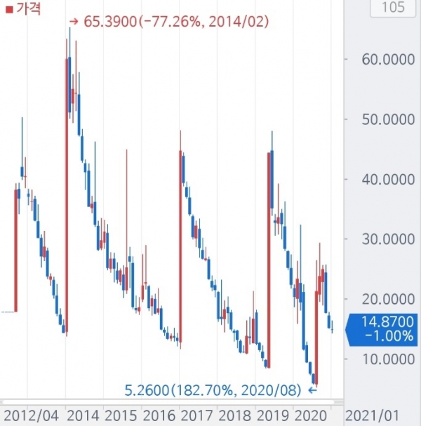 에서 확인할 수 있듯이, 계속해서 하락세를 보이고 있었어요.